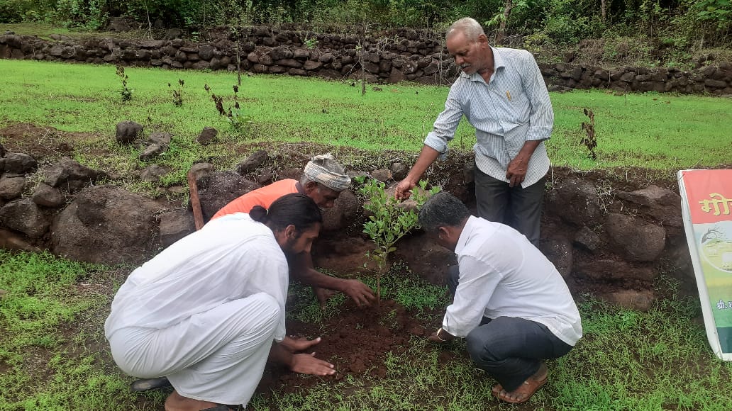 आज पुनाडे तर्फे नाते सरपंच श्री जयेश महादेव लामजे ने रायगड किले के परिसर के गांव कोंडरान में प्रस्तावित गोचर तीर्थ में सौम्य मुनिजी के सानिध्य में अपना 51 वां जन्मदिवस [ Birthday Celebrating ] पौधारोपण करके मनाया।अपने जन्मनक्षत्र उत्तरभाद्रपद के अनुसार नीम प्रजाती के पौधों का वृक्षारोपण किया व साथ ही 101 फलदार व औसधिय वृक्ष लगाने का संकल्प भी लिया।