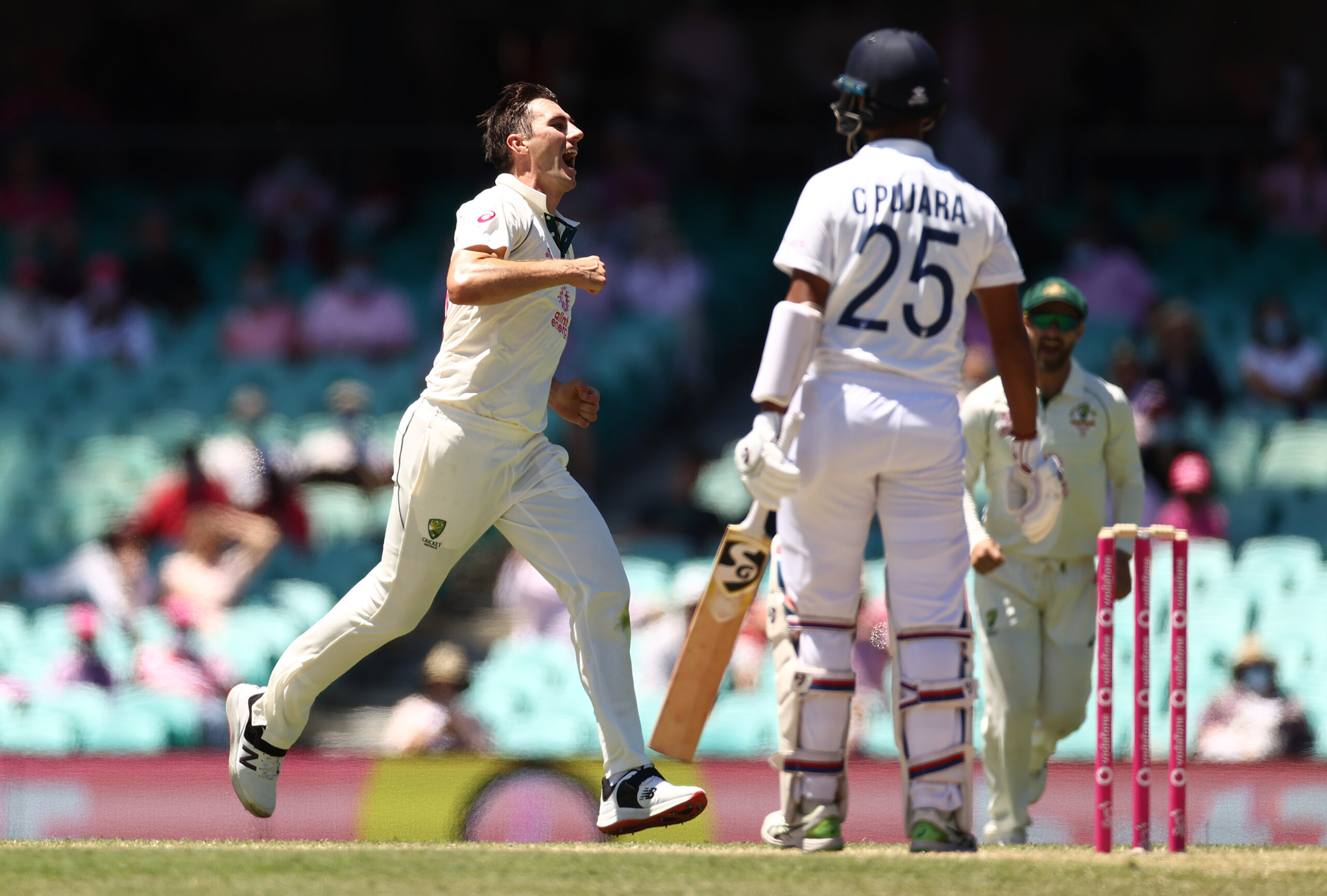 पिछले मैच में शतक लगाने वाले अजिंक्य रहाणे 22 रन बनाकर पैट कमिंस की गेंद पर बोल्ड हो गए. रहाणे के आउट होते ही हनुमा विहारी (4) और ऋषभ पंत (36) भी जल्दी-जल्दी आउट हो गए. पुजारा ने 176 गेंद में 50 रन बनाए. रवींद्र जडेजा 28 रनों पर नाबाद लौटे.